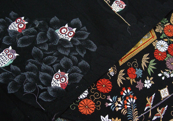 宝尽くしとフクロウの可愛らしい帯地を仕入れたので