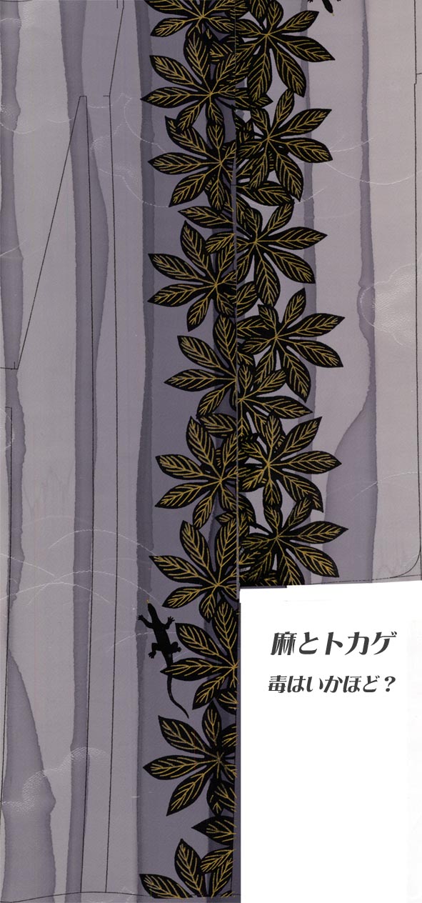 麻の葉とトカゲのシルエットを染めました。